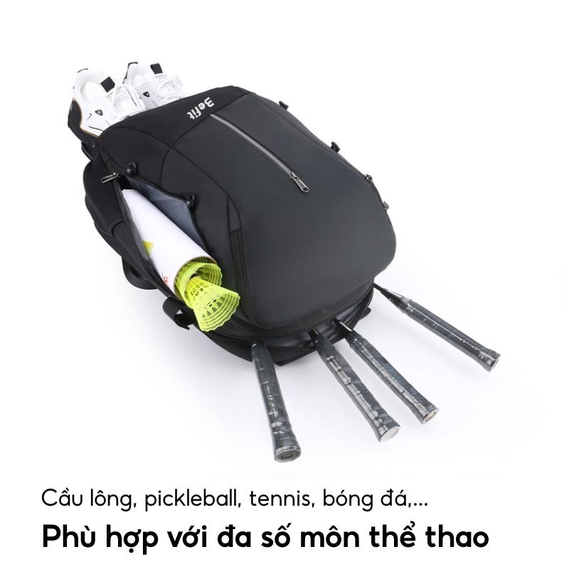 - Đa năng, ngăn lớn: Với nhiều ngăn tiện lợi và không gian lớn, balo phù hợp cho nhiều hoạt động thể thao như cầu lông, tennis, bóng rổ, và đi du lịch.